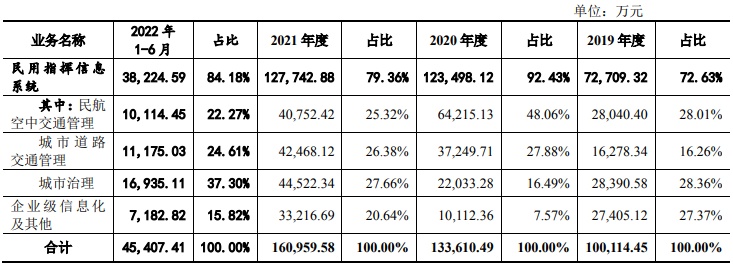 招股书显示,莱斯信息作为民用指挥信息系统整体解决方案提供商,主要面向民航空中交通管理、城市道路交通管理以及城市治理等行业的信息化需求,提供以指挥控制技术为核心的指挥信息系统整体解决方案和系列产品。