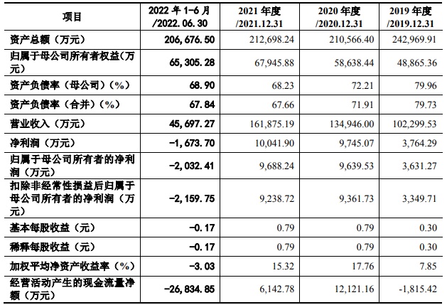 财务方面,于2019年度、2020年度、2021年度,公司实现营业收入约为10.23亿元、13.49亿元、16.19亿元。净利润分别约为3764.29万元、9745.07万元、1.0亿元。