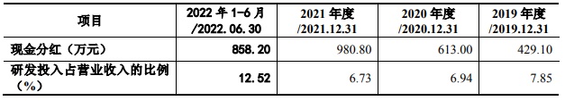 需要注意的是,招股书特别提醒投资者注意经营活动产生的现金流量净额较低的风险。报告期各期,公司经营活动产生的现金流量净额分别为-1,815.42万元、1.21亿元、6,142.78万元和-2.68亿元,2019年度和2022年1-6月经营活动产生的现金流量净额为负数。2019年度公司经营活动产生的现金流量净额较低,主要系公司采用项目制为主的生产经营模式,项目周期较长,项目执行过程中对公司资金占用较大。2022年1-6月公司经营活动产生的现金流量净额为负主要系上半年回款较少。