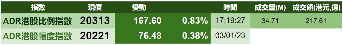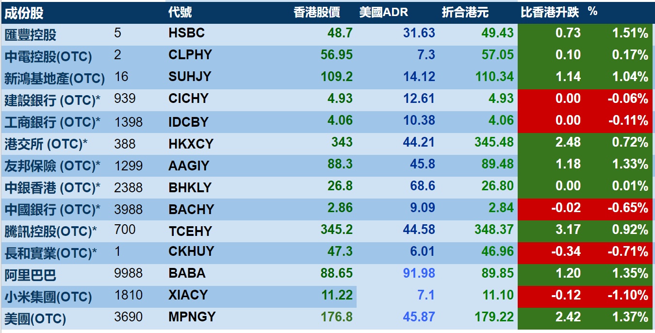 智通财经APP获悉,周二美股三大指数集体收跌,港股ADR指数上涨,按比例计算,收报20313点,较香港收市升167.60点或0.83%。
