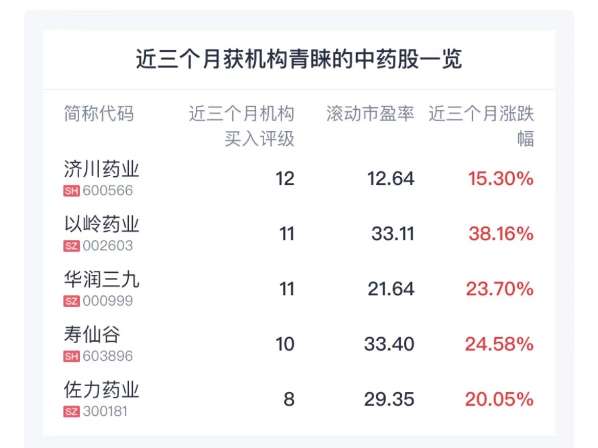 2、卫健委为基层医疗机构配齐配足中成药等 机构青睐股一览