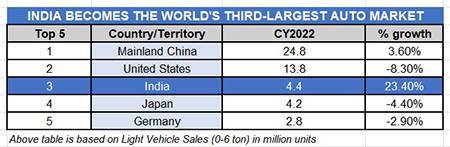 标普Global Mobility在11月1日早些时候的新闻简报中已经表示,印度在2022年第二季度和第三季度超过日本成为第三大汽车市场。因此,几乎可以肯定的是,在创纪录的假日购物季,即使是在全年的基础上,印度也将全面领先日本。