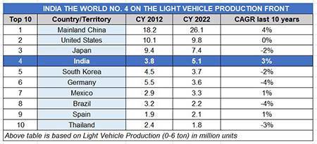 标普Global Mobility副总监Gaurav Vangaal表示,2021年,印度成为第四大制造业国家,并在2022年保持这一地位。Vangaal表示:“尽管在过去十年中经历了多次小问题,非货币化、NBFC危机、监管从BS4上升到BS6、实施更严格的安全规范、新冠疫情、芯片短缺和俄乌冲突,但印度是前十大市场中仅有的三个市场之一——这三个市场在过去十年中实现了强劲的增长。”