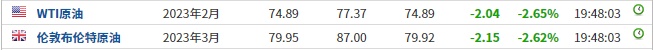 3. 截至发稿,WTI原油跌2.65%,报74.89美元/桶。布伦特原油跌2.62%,报79.95美元/桶。