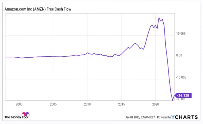 亚马逊的自由现金流产生被证明是一种新冠疫情下的反常现象。零售业开始恢复正常,需求开始恢复正常,这让亚马逊的成本基础变得不可持续。