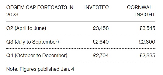 咨询公司Cornwall Insight周三公布的估计则认为,7月份Ofgem的价格上限将降至2800英镑。不过,未来的上限水平很难被准确预测,因为这种方式是根据接近相关计费期的价格来设定上限的。