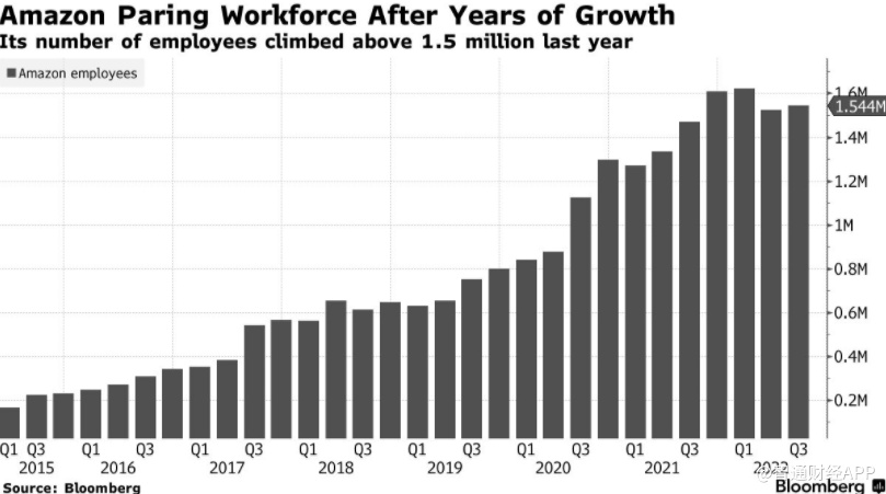 裁减1.7万名员工将是科技公司在当前经济放缓期间裁员最多的一次,但亚马逊的员工人数也远超过硅谷同行。截至2022年9月底,该公司拥有超过150万名员工,这意味着最新的裁员将占员工总数的1%左右。