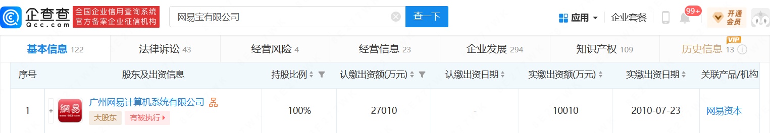 智通财经APP获悉,企查查APP显示,近日,网易宝有限公司发生工商变更,注册资本由约1.3亿元增资至2.7亿元,增幅约108%。股东信息显示,该公司由广州网易计算机系统有限公司全资持股。据公开资料显示,网易宝有限公司成立于2010年月7月,法定代表人为刘庆生,经营范围包括互联网支付业务;网上支付、结算及清算业务的技术开发;计算机软件、硬件、多媒体和计算机网络系统的技术开发和维护等。