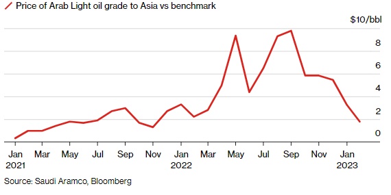 智通财经APP获悉,沙特阿拉伯下调了2月份所有销往亚洲的石油价格,表明随着经济放缓,沙特主要市场的需求依然低迷。据了解,沙特阿美下调了2月份将运往亚洲的所有类型原油的价格,其中该公司的旗舰产品阿拉伯轻质原油(Arab