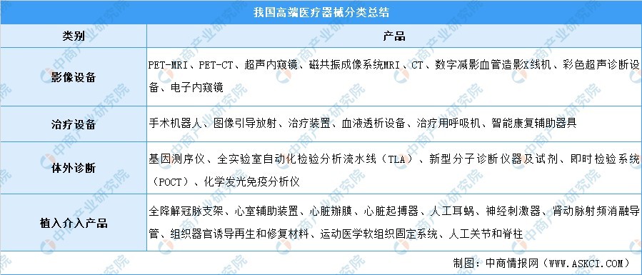 目前我国高端医疗器械主要分为影像设备、治疗设备、体外诊断和植入介入产品四类。