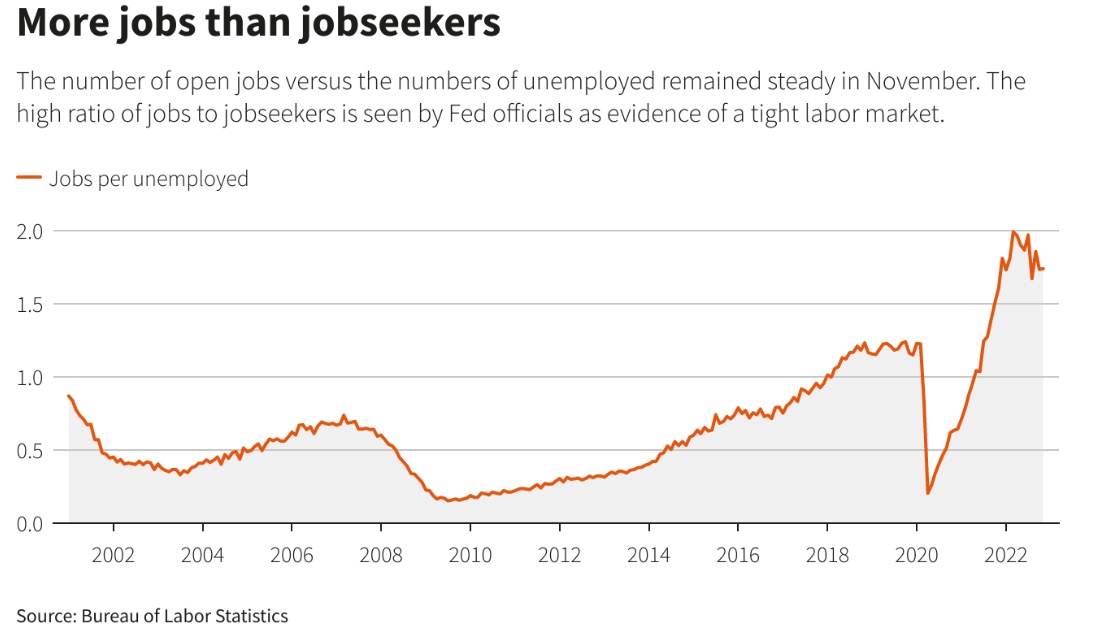Duy在美联储本周公布12月会议纪要后写道:“认为劳动力市场仍然过于紧张是鹰派和鸽派美联储官员达成的普遍共识。”他认为,会议纪要显示美联储“愿意承担相应的成本”,迫使美国的整体失业率上升。