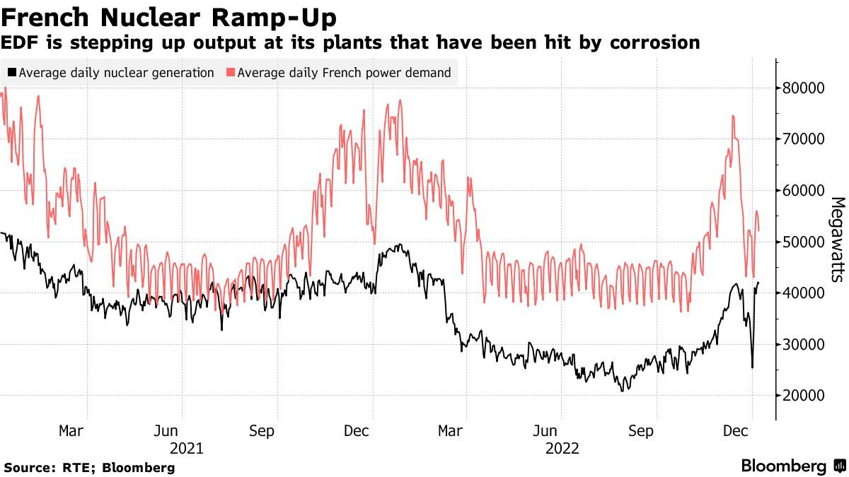 EDF反应堆持续存在的问题,包括腐蚀问题,导致法国从一些邻国进口了更多的电力,并导致法国的电力批发价格在欧洲一度达到最高。德国对法国的电力出口一度达到30年来的最高水平,而英国则有记录以来首次成为净出口国。