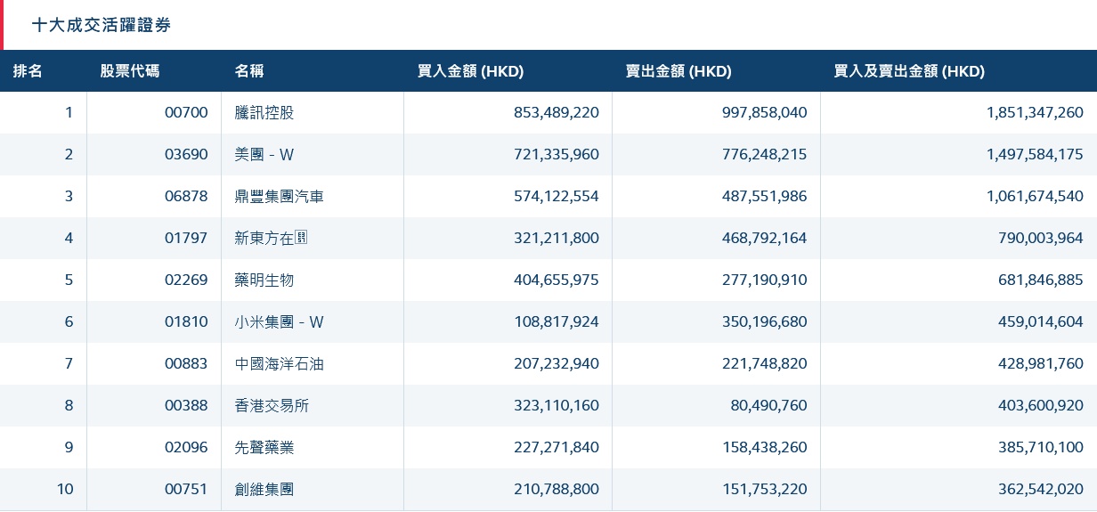此外,建设银行(00939)、中国移动(00941)、中海油(00883)分别遭净卖出2.84亿、9238万、1451万港元。