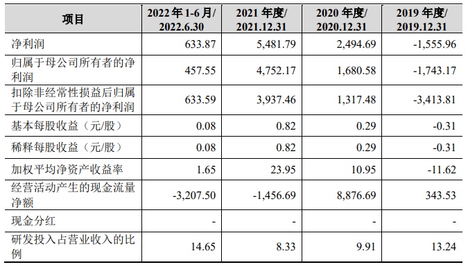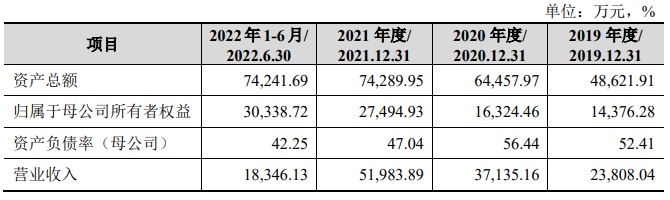 财务方面,于2019年、2020年、2021年及2022年上半年,爱科赛博实现营业收入分别约为2.38亿元(人民币,下同)、3.71亿元、5.2亿元及1.83亿元;同期,归属于母公司所有者的净利润分别约为-1743.17万元、1680.58万元、4752.17万元及457.55万元。