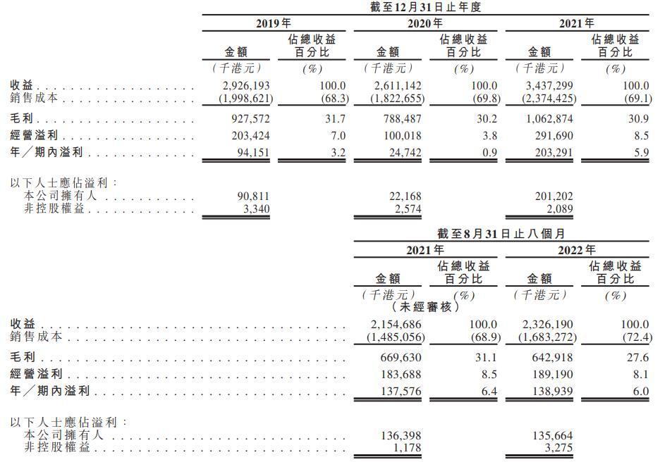 财务方面,于2019年、2020年及2021年,SML收益分别约为29.26亿港元、26.11亿港元及34.37亿港元。同期,年内溢利分别约为9415.1万港元、2474.2万港元及2.03亿港元。