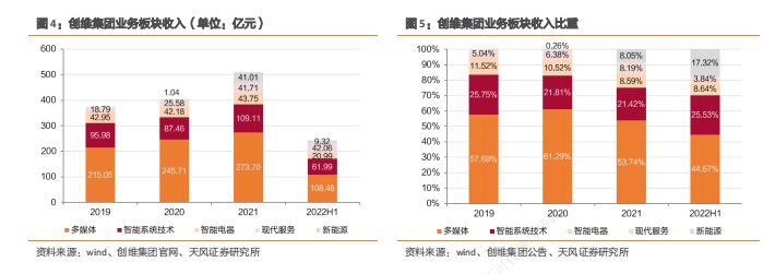 除了新能源业务之外,多媒体业务仍是业务基本盘。2019-2021年收入比重持续保持在50%以上。2021年公司多媒体业务收入为273.7亿元,两年年复合增长率为12.8%。2022上半年受全球疫情影响叠加原材料成本上涨,多媒体业务收入108.48亿元,同比下降15%,收入占比为44.7%。