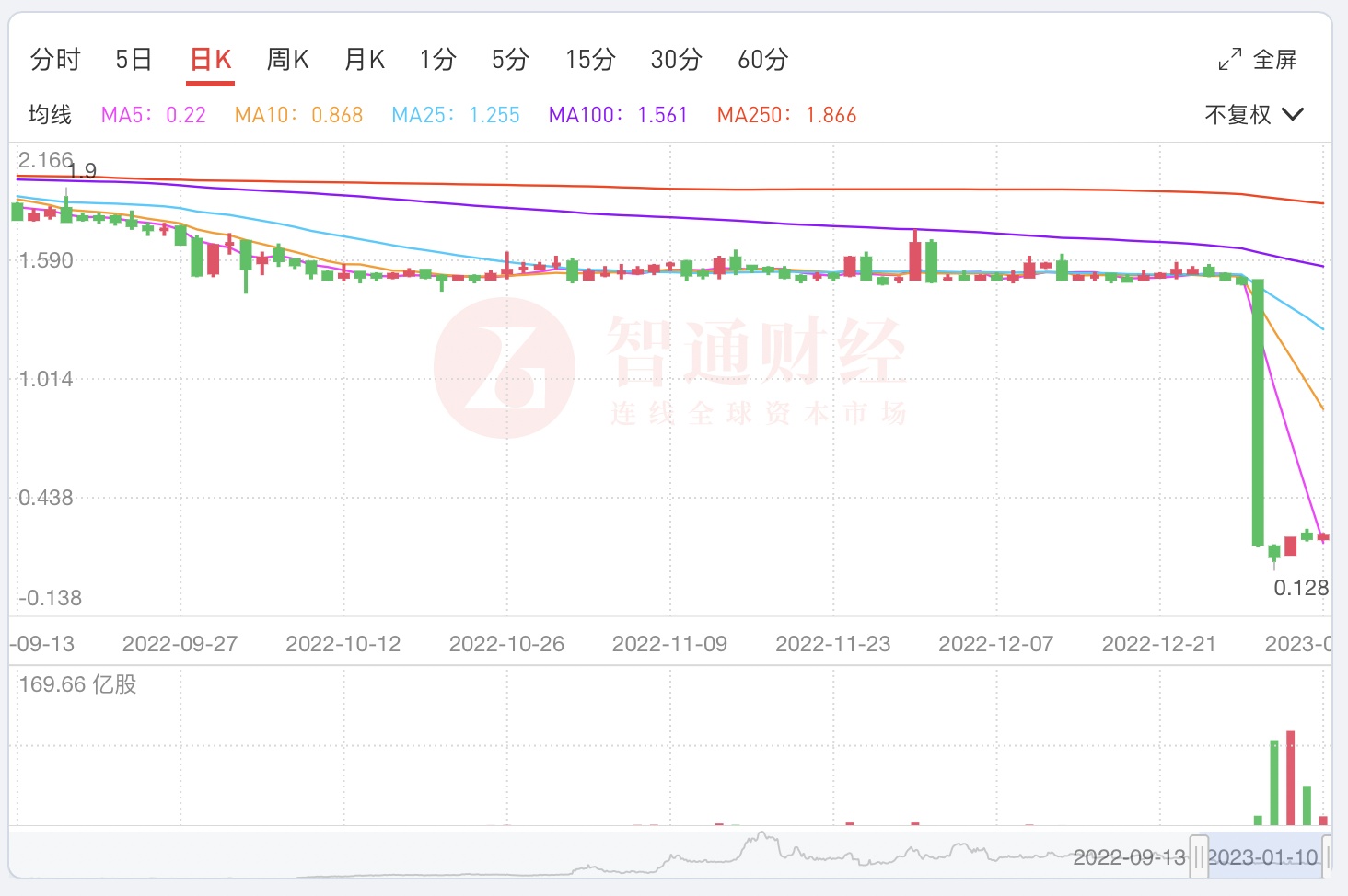 据智通财经APP数据显示,1月3日开盘不久后,鼎丰集团汽车的股价一路下行,最终在上午11时08分以停牌收场,停牌前跌85.5%。在触发9次市场调节机制后,100亿市值公司只剩15亿港元。与此同时,公司成交量激增,不到两个小时,公司成交额已超3.6亿港元。而前一交易日,该股日成交额不足3500万港元。随后,公司于1月5日复盘,公司股价再度暴跌近30%。