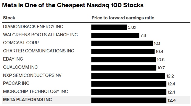 在4家最大的超大型股中,Alphabet是唯一一家市盈率低于整体市场水平的公司。而Meta股价去年下跌64%后,投资者的情况一直在好转。这一下跌使该Facebook母公司市盈率从几年前的28倍降至12倍,使其成为纳斯达克100指数中最便宜的股票之一。包括裁员1.1万多人在内的大幅成本削减措施已帮助该公司股价较去年11月的低点上涨46%。