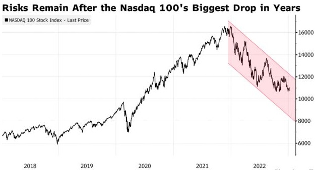 投资者终于度过了10多年来股市最糟糕的一年,松了一口气,但现在,高昂的股价估值和不断萎缩的盈利仍阻碍着大型科技公司迅速反弹。虽然市盈率已从疫情期间的峰值回落,但许多市场上的知名公司看起来仍很昂贵。与此同时,由于美联储大举加息以抗击通胀,企业利润前景正在走弱,美国经济可能走向衰退。