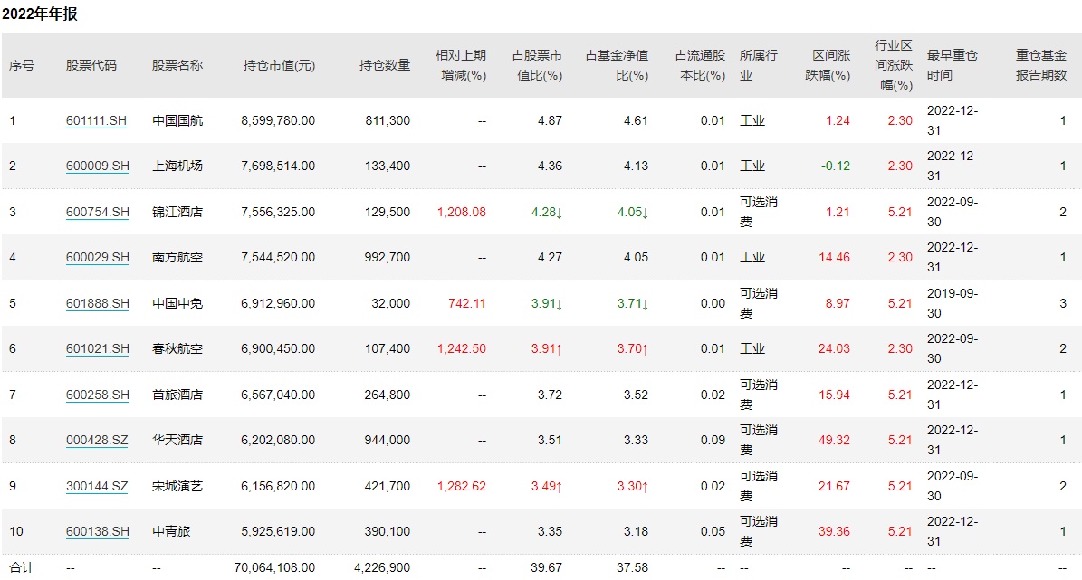 李孝华在四季报中表示,四季度基金的投资操作基本遵循了三季报中给出的思路,将投向聚焦于航空、酒店、餐饮、景点及机场等旅游相关板块,侧重于挖掘旅游板块中小市值个股的投资机会。在具体个股投资上,李孝华判断投资旅游板块当下的核心矛盾是“困境反转”,围绕着这个大逻辑,基金着重配置那些在疫情中受损严重且会显著受益防疫政策调整的个股或板块。