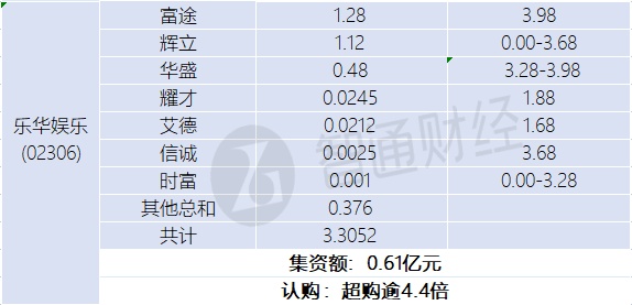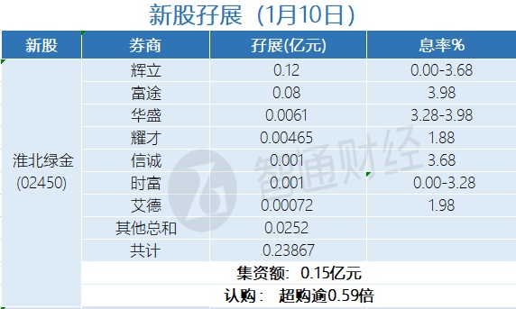 智通财经APP获悉,淮北绿金(02450)、乐华娱乐(02306)正在招股中。截至1月10日,辉立、华盛等合计为淮北绿金借出孖展 0.23867亿港元,超购逾0.59倍;合计为乐华娱乐借出孖展3.3052亿港元,超购逾4.4倍。