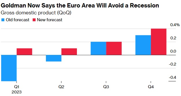 智通财经APP获悉,高盛经济学家不再预测欧元区会出现衰退,原因是欧元区经济在2022年底被证明更具弹性,且天然气价格大幅下跌。高盛目前预计今年欧元区GDP将增长0.6%,而此前的预测是萎缩0.1%。以Jari Stehn为首的经济学家表示,尽管由于能源危机,冬季经济增长仍将疲弱,但2023年第一季度可能会增长0.1%。他们还认为欧元区通胀放缓的速度比预期的要快,到2023年底将降至3.25%左右。其次,高盛再次重申,欧洲央行将在2月和3月的会议上加息50个基点,随后在5月加息25个基点,将存款利率上调至3.25%。