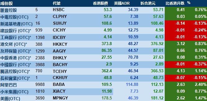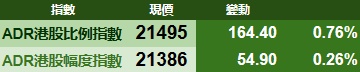 智通财经APP获悉,周二美股三大指数集体收涨,港股ADR指数上涨,按比例计算,收报21495点,较香港收市涨164.40点或0.76%。