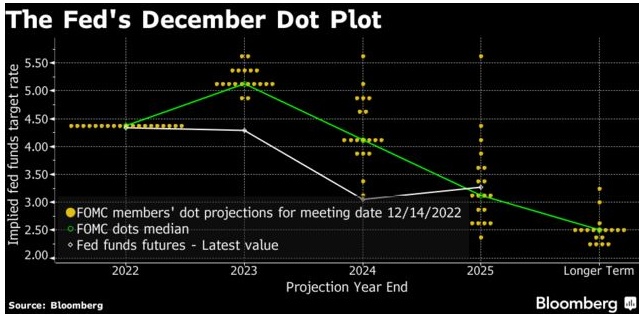 会议上发布的最新经济预测显示,19位美联储官员中有17位预计今年利率将升至5%以上。没有政策制定者预计会在2023年降息。官员们将于1月31日至2月1日举行下一次会议。
