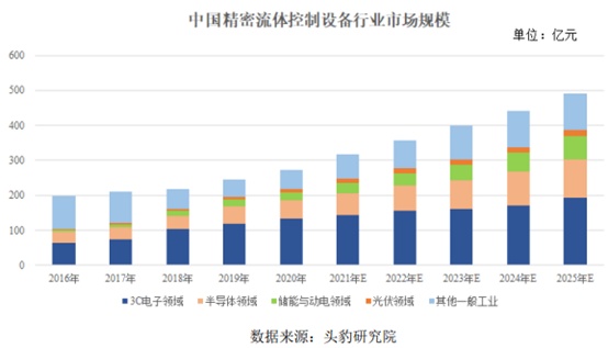 点胶控制系统是自动点胶设备等精密流体控制设备的核心部件之一,其与精密流体控制设备行业发展息息相关,根据头豹研究院发布的报告显示,2020年中国精密流体控制设备市场规模为272.3亿元,2025年将上涨为490.6亿元。