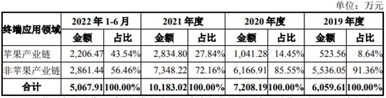值得关注的是,按照产品终端应用领域是否为苹果产业链收入构成情况如下: