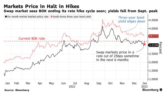 法国兴业银行经济学家Oh Suktae和Seong Kiyong表示,“1月份加息25个基点应该是本轮加息周期的最后一次。”“围绕金融稳定的担忧现在集中在企业杠杆负担和房地产市场疲软上。”