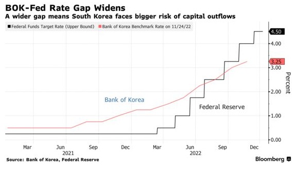 然而,通货膨胀率仍保持在5%左右,远高于韩国银行2%的目标。由于美联储持续上调利率,韩国也有必要为避免与美国的利差过度扩大做好准备。