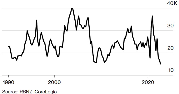 由于房地产价格于2021年上涨近30%后出现逆转,新西兰去年的房地产销售量大幅放缓。因担心支付过高发房贷利息,通过使用廉价贷款购置房产的买家活动也相应减少。
