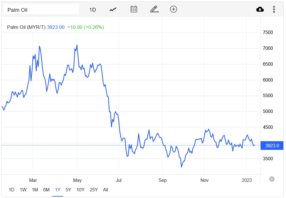 截至发稿,马来西亚棕榈油期货报3923林吉特/吨,较1月3日触及的高位4253林吉特/吨有所回落。该期货价格曾在去年8月涨至7100林吉特/吨上方。
