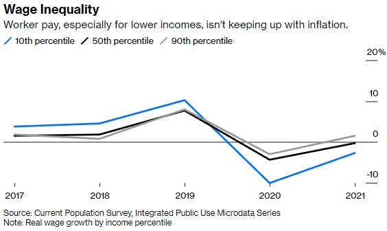 然而,劳动力市场并不像看上去那么好。名义工资增长可能看起来很高,但考虑到通货膨胀,许多家庭——尤其是低收入家庭——仍在变得越来越穷。