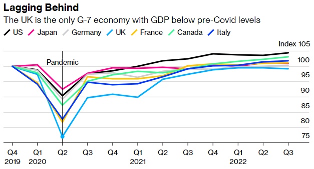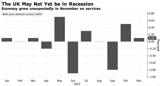 11月的数据意味着,英国经济可能在2022年最后几个月避免了衰退。英国国家统计局表示,12月份的GDP数据必须下降约0.5%,才能使第四季度出现收缩。
