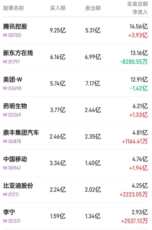此外,鼎丰集团汽车(06878)获净买入1164万港元。而建设银行(00939)、信达生物(01801)、理想汽车-W(02015)分别遭净卖出2.37亿、1.95亿、8035万港元。
