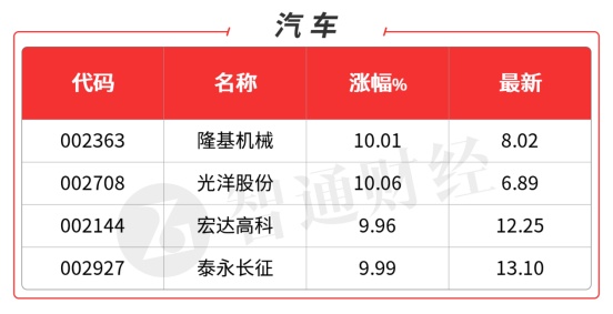 汽车板块依旧维持了强度,点到的泰永长征(002927.SZ)直接开出了一字。重点挖掘的方向还是比亚迪合作加上充电桩,比较贴的是隆基机械(002363.SZ),另外一个方向是电子后视镜的合力泰(002217.SZ)。
