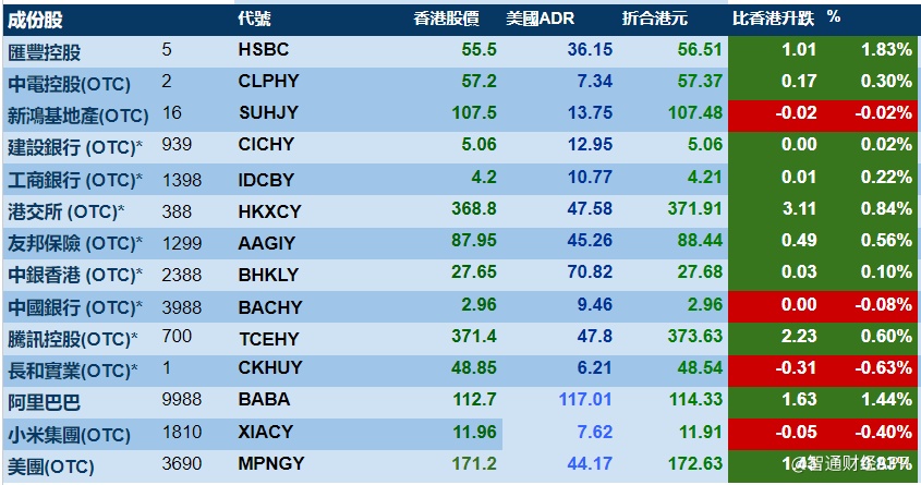 智通财经APP获悉,周五美股三大指数集体收涨,港股ADR指数上涨,按比例计算,收报21905点,较香港收市涨166.66点或0.76%。