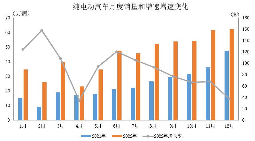 2022年,新能源汽车持续爆发式增长,逐步进入全面市场化拓展期,迎来新的发展和增长阶段。新能源汽车产销尽管也受疫情及动力电池原材料价格高位运行等不利因素影响,但党中央及各地政府对于新能源汽车发展高度重视,在税收、补贴等方面出台多项促新能源汽车消费的政策,同时企业也积极开发新能源汽车产品,供应链资源优先向新能源汽车集中,整体产销完成情况超出预期。