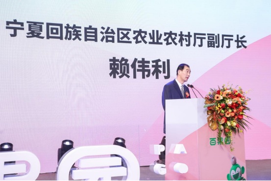 宁夏回族自治区农业农村厅副厅长赖伟利现场致辞,他表示“百果园集团是全国水果行业领军企业,为我国生鲜农产品全产业链构建发挥了重要的示范引领作用。近年来宁夏与百果园集团在优质农产品基地建设、技术推广、产品销售、人才培养等方面,开展了深层次交流合作,取得了丰硕成果。百果园“三个零技术”在宁夏全省域示范推广,宁夏硒砂瓜、麒麟瓜、沙漠蜜瓜、樱桃番茄、宁夏枸杞、盐池滩羊肉等产品通过百果园渠道销往全国大中城市高端市场,宁夏特色优质农产品知名度和美誉度进一步提高,绿色生产水平进一步提升。百果园集团在香港交易所成功上市,是公司发展史上一个新的里程碑,开启了融入资本市场加快高质量发展的新阶段,对助推我国现代农业发展必将起到积极作用。”