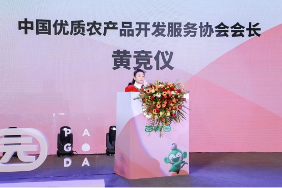 中国优质农产品开发服务协会会长黄竞仪现场致辞,她表示“农强国强,行则将至。百果园集团成为港交所“水果连锁零售”第一股,标志着百果园集团成功搭建起境内外资本运作平台,为推进产业转型、加快高质量发展奠定了坚实基础。同时,百果园集团选择从产业链优势出发,实施全面乡村振兴战略。从种植端到零售端,从水果到大农业,百果园集团积极推动全产业链升级,以产业振兴助力乡村振兴、实现农业可持续发展。”