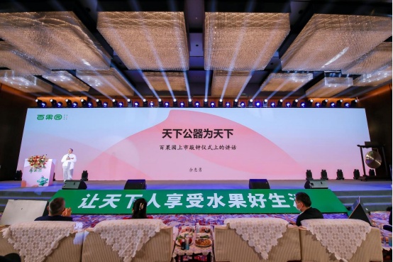 当天,以“大家的果园”为主题,百果园集团还举办了上市庆祝活动。驻华使馆外宾、各地各级政府部门、行政事业单位、国内外行业协会、院校及科研机构、股东、中介机构、合作企业、生态圈伙伴等嘉宾代表,近500人现场出席。