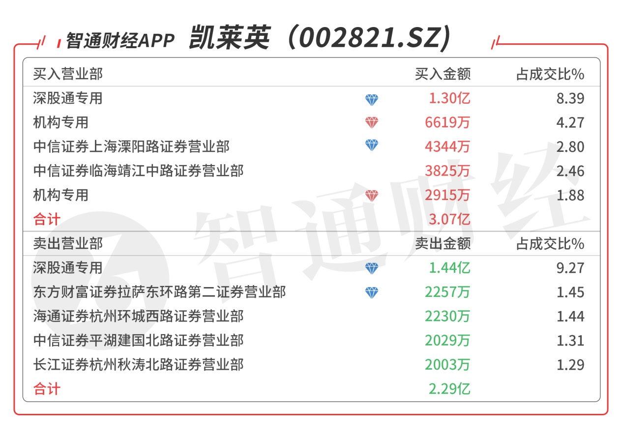 凯莱英(002821.SZ):龙虎榜阵容豪华,2家机构席位合计买入9534万元,深股通大单对倒卖出1351万元,买三是顶级游资章盟主的席位买入4322万元,当日净买入8225万元,该股今日突破半年线,有望冲击年线。