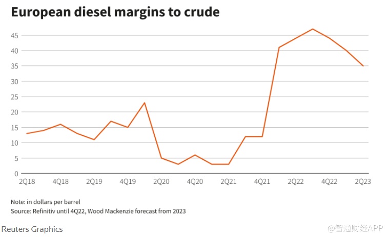 咨询公司Wood Mackenzie预计,欧洲柴油利润率将在今年上半年达到每桶38美元,是过去五年平均水平的两倍多。