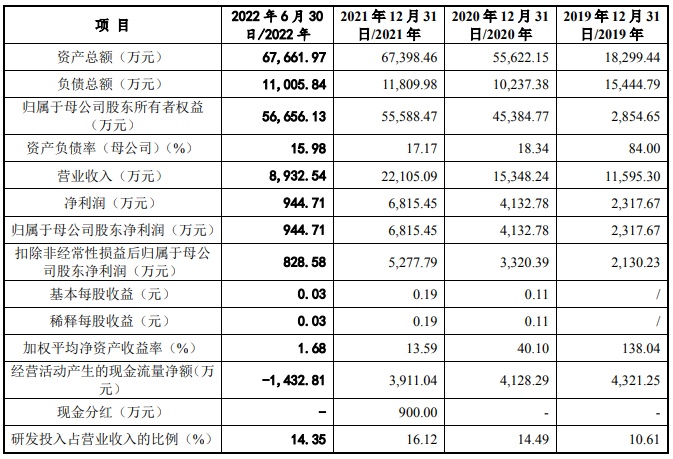 财务方面,于2019年度、2020年度、2021年度,公司实现营业收入约为1.16亿元、1.53亿元、2.21亿元。净利润分别约为2317.67万元、4132.78万元、6815.45万元。