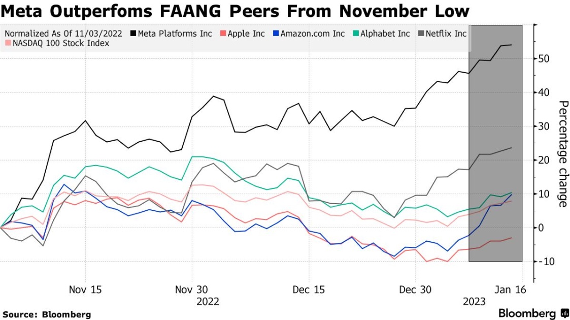 智通财经APP获悉,自去年11月Meta(META.US)跌至近期低点以来,该股是标普500指数中表现最好的股票,涨幅达54%。这一反弹的部分原因是该公司宣布将裁员11000多人,这是该公司历史上第一轮大规模裁员。然而,过去几个月跑赢市场的涨势仍未能说服一些怀疑论者,因为这家Facebook和Instagram的所有者计划继续投入大量资金来构建元宇宙。