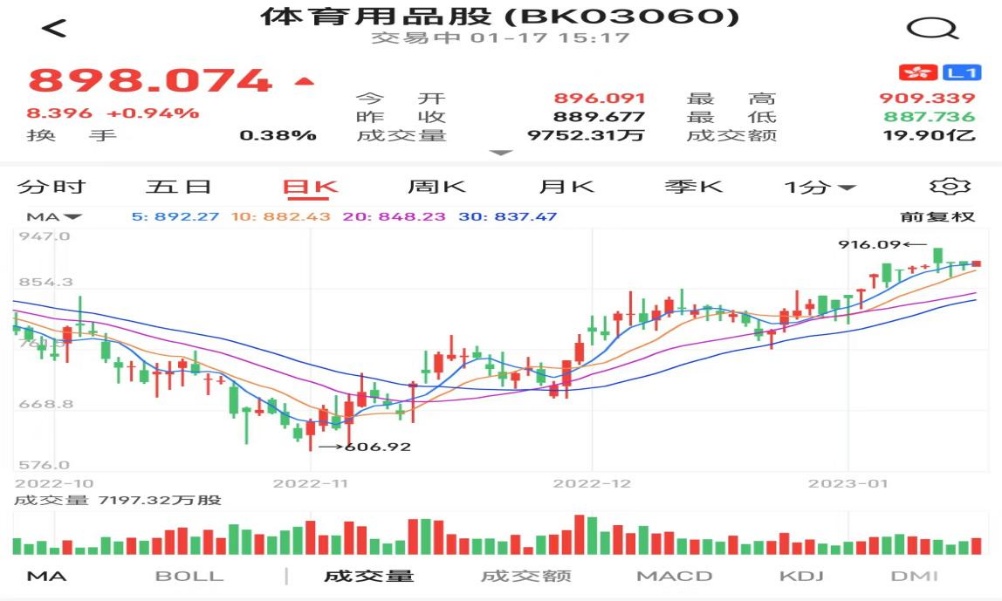 据智通财经APP观察,港股体育用品板块上涨的主要原因有二。首先是防疫政策优化调整,给具有社交属性的体育用品市场带来增长预期。另一方面,2022年12月《扩大内需战略规划纲要(2022-2035年)》(下称《纲要》),提出全面促进消费,加快消费提质升级。在纺织服饰领域《纲要》指出,要提高吃穿等基本消费品质,促进群众体育消费。深入实施全民健身战略,促进竞赛表演产业扩容升级。发展在线健身、线上赛事等新业态。推进冰雪运动“南展西扩东进”,带动群众“喜冰乐雪”。