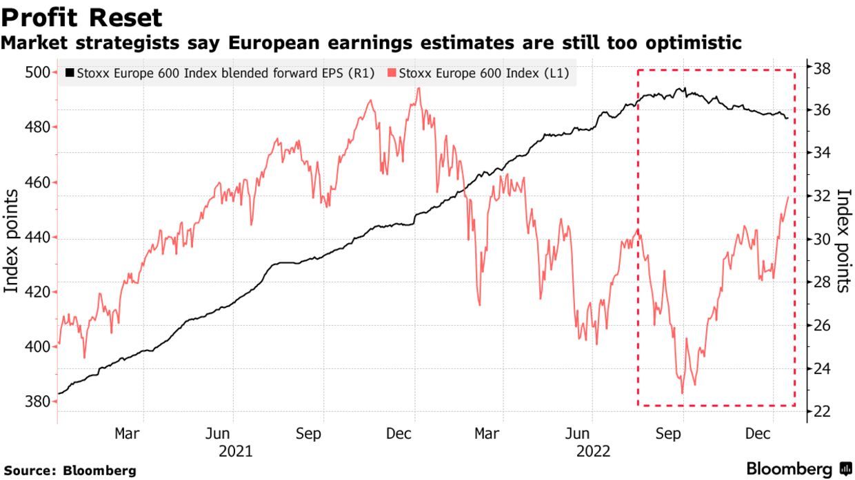 有策略师表示,欧股面临的下一个重大考验还将来自企业盈利,预计企业业绩将揭示衰退的开始。瑞士银行高级分析师Ipek Ozkardeskaya表示:“尽管经济衰退预期本身对市场不是坏消息,但经济衰退导致的盈利预期下降却是坏消息。因此,所有人都在关注企业盈利。”