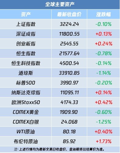 5、欧股市场:欧洲主要股指周二收盘涨跌不一,德国DAX30指数涨0.35%,英国富时100指数跌0.12%,法国CAC40指数涨0.48%,欧洲斯托克50指数涨0.42%。